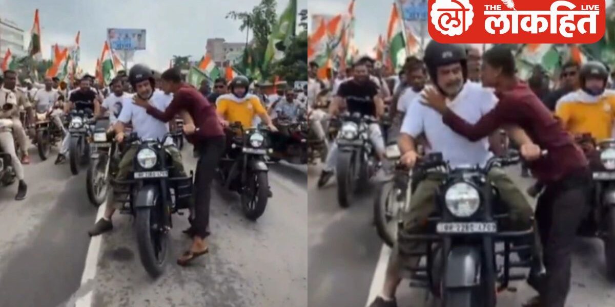राहुल गांधी बिहारमध्ये मतदार हक्क यात्रेदरम्यान अररियात एका तरुणाने सुरक्षा घेरा मोडून त्यांना मिठी मारून चुंबन दिले. ज्याचा व्हिडीओ सोशल मीडियावर व्हायरल झाला आहे. महाराष्ट्राच्या राजकीय रंगमंचावर गेल्या काही महिन्यांपासून मत चोरीचा वाद तापत आहे. हा वाद आता थेट केंद्र सरकारपर्यंत पोहोचला आहे. काँग्रेस नेते राहुल गांधी यांनी या मुद्द्यावरून राजकारणात खळबळ उडवून दिली आहे. … Continue reading Viral Moment : सुरक्षा कवच भेदून राहुल गांधींना तरुणाने केली किस