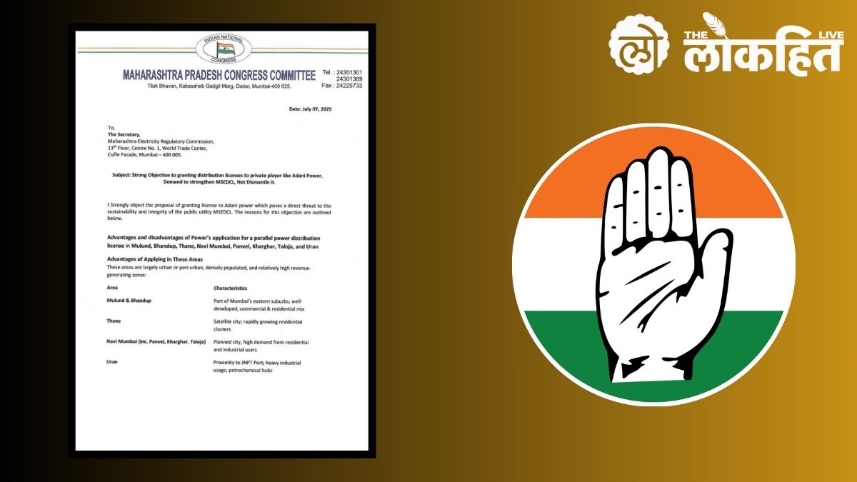 महावितरणसारख्या लोकसेवक संस्थेला संपवण्याचा डाव चालला आहे, असा गंभीर आरोप करत काँग्रेसचे ज्येष्ठ नेते व महाराष्ट्र प्रदेश काँग्रेस कमिटीचे सरचिटणीस, तसेच माजी उपमहापौर राजेश शर्मा यांनी वीज नियामक आयोगाला थेट पत्र पाठवत अदानी पॉवरला वीज वितरणाचा परवाना न देण्याची ठाम मागणी केली आहे. राजेश शर्मा यांच्या म्हणण्यानुसार, अदानी पॉवरने फक्त आर्थिकदृष्ट्या फायद्याचे वीज वितरण क्षेत्र निवडले असून, त्यामध्ये मुलुंड, भांडुप, ठाणे, नवी मुंबई, पनवेल, खारघर, तळोजा व उरण या आर्थिकदृष्ट्या संपन्न, शहरी किंवा अर्धशहरी क्षेत्रांचा समावेश आहे.