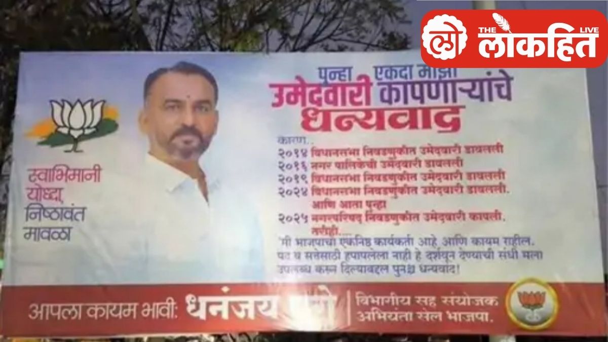 भाजपचे कार्यकर्ते धनंजय घुगे यांनी गेल्या दशकभरात विविध निवडणुकींसाठी पाच वेळा उमेदवारी मागितली होती. पण प्रत्येक वेळी पक्षाने वेगवेगळ्या कारणांमुळे त्यांची निवड टाळली. अनेकदा संधी न मिळाल्यास राजकीय कारकिर्द मार्ग बदलते. मात्र घुगे यांनी प्रसंगाला नकारात्मक न पाहता त्यातून एक नवा संदेशच उभा केला. त्यांनी आपल्या बॅनरमधून राजकारणातील स्वाभिमान आणि समर्पणाचे वेगळे परिमाण स्पष्ट केले.
